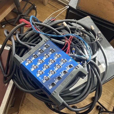 12 inputs. 4 returer. 25 meter, med case. Är tung och skickas helst inte, men kan hämtas i Uppsala.