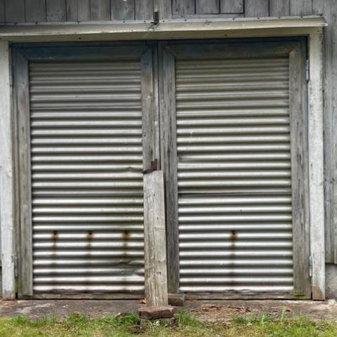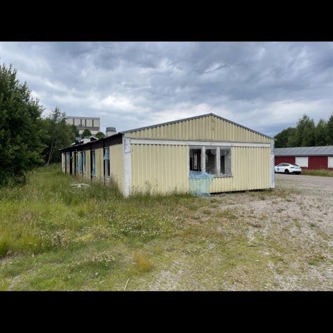 Garage byggt i plåt med enkel dörr och fönster. Byggnaden är avsedd för hobbygarage, förvaring och skydd av fordon eller utrustning. Taket är lutande och konstruktionen är enkel. Isolerad.
