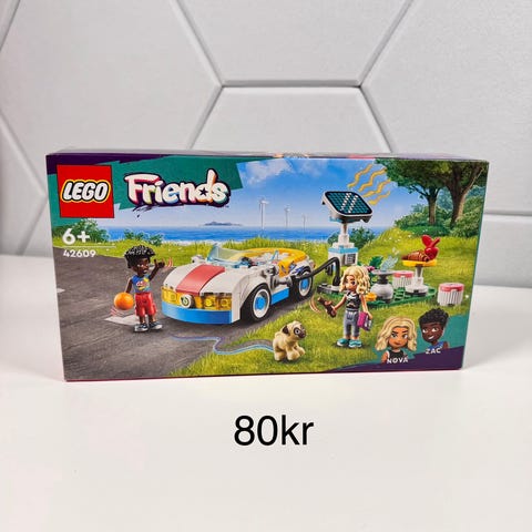 LEGO Friends figurer, skoter med sidovagn, surfbräda och stranddetaljer. Setet är avsett för barn och innehåller flera små delar för kreativ lek.