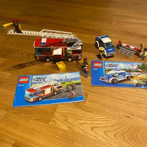 LEGO City byggsatser innehållande olika arbetsfordon i gul färg samt flera minifigurer. Seten inkluderar en dumper, en lastare och en terrängbil, alla med detaljerade tillbehör.