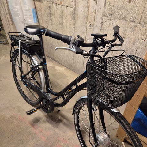 Fin elcykel med uppgraderat och nytt batteri med garanti. 13,5Ah som tar dig runt 40-50km på en laddning. Sparsamt använd. Kan fås med en Hamax barnstol. Står på Lidingö .