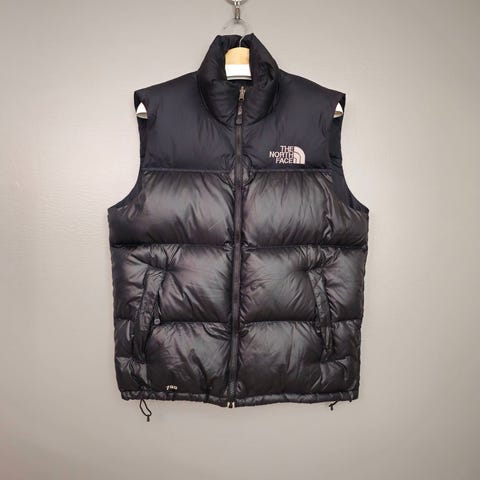 The North Face jacka i storlek L, svart färg, tillverkad i dunmaterial.