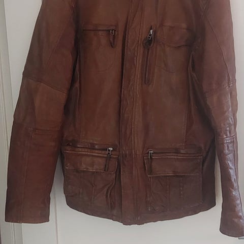 Läderpäls i äkta skinn med pälskrage