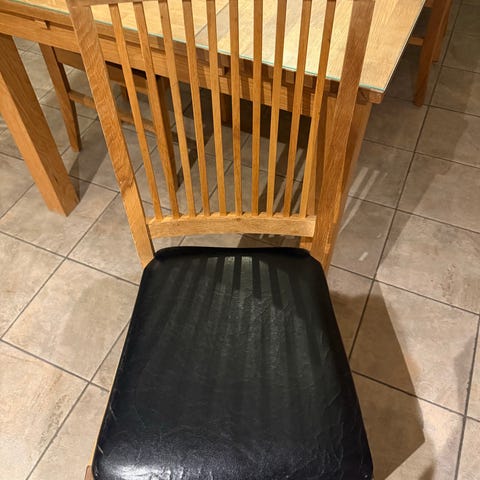 4st köksstolar i ek samt svart läder i mycket fint skick. Inköpta på Mio.