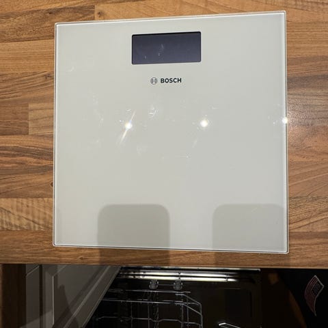 Withings Body Personvåg i svart med glas- och plastmaterial. Designad för hemmabruk för att mäta kroppsvikt och andra hälsorelaterade parametrar.