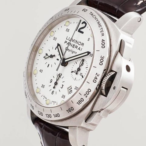 IWC Pilot’s Watch Top Gun Lake Tahoe är en kraftfull och modern pilotklocka med en distinkt vit keramisk boett. Den svarta urtavlan och de tydliga indexen ger utmärkt läsbarhet, medan den robusta konstruktionen speglar IWCs fokus på funktion, precision och hållbar design.
