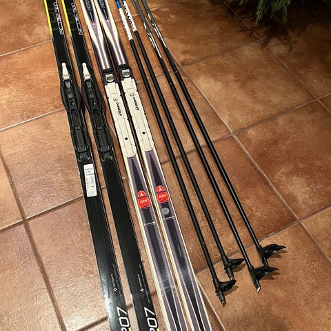 Längdskidor pjäxor bindningar stavar och väskor allting är bara använt en gång på semester i fjällen nypris ca 7000