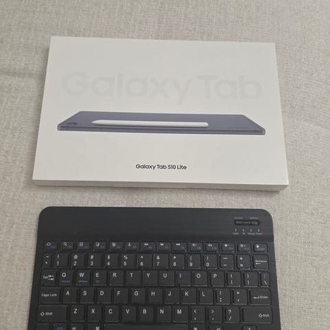 Helt ny S10FE+ surfplatta med skärmskydd och fordral inklusive bakgrundsbelyst bluetooth tangentbord med magnetisk infästning.