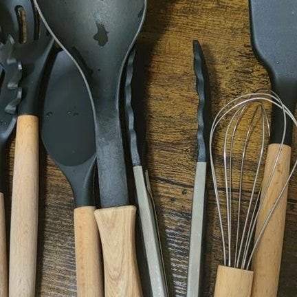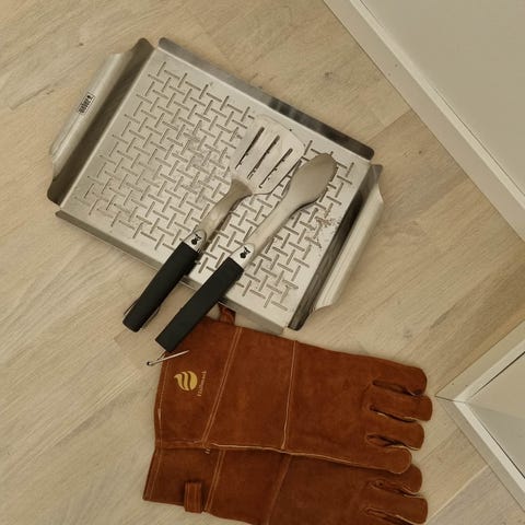 Set med tre grillbestick inklusive spatel, tång och gaffel