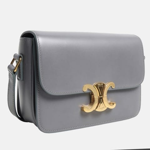 Teen Triomphe bag in shiny calfskin with an adjustable leather shoulder strap and a Triomphe clasp.