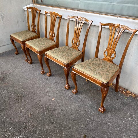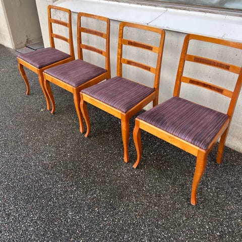 Retro funkis stolar 4 st Bröderna Johansson Virserum 1930/1940-tal i bonad björk med klädd sits i fint bruksskick se bilder.