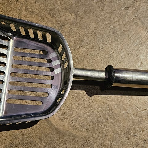 Helt ny grå Kattspade med små glipor för finkornig kattsand. Designad för maximera upskopning av damm.