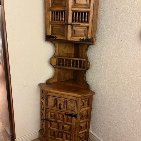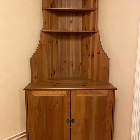 Säljer ett mycket fint hörnskåp i massivt trä med klassisk lantlig design. Skåpet passar perfekt i vardagsrum, matsal eller kök och ger ett varmt och hemtrevligt intryck.