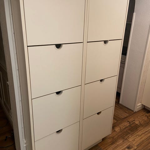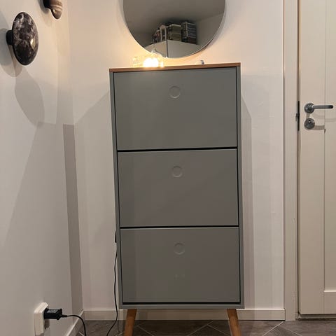 Hübsch Herringbone shoe cabinet that goes on the wall. Bought from AndLight. Unfortunately it's a bit too long for our hallway. It arrived with few small dents and marks (therefore reduced price), but nothing major - doesn't really affect how it looks or works. Can send more pics if needed. Pick up in Kallhäll.