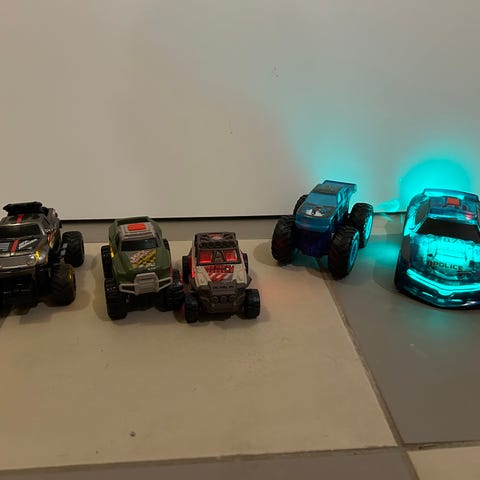 Banor och tillbehör samt fyra tillhörande bilar. Allt fungerar.