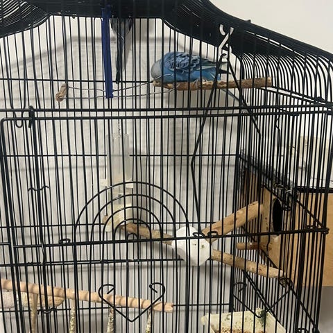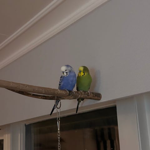 Tyvärr behöver vi sälja våra fina undulater kiwi och iwi pågrund av tidsbrist (hanar) vi vet tyvärr ej hur gamla dom är men är max 1 år, behövs säljas tillsammans för att det är så det alltid har varit och behövs fortsätta så. Dom är vana vid barn och älskar och sjunga.