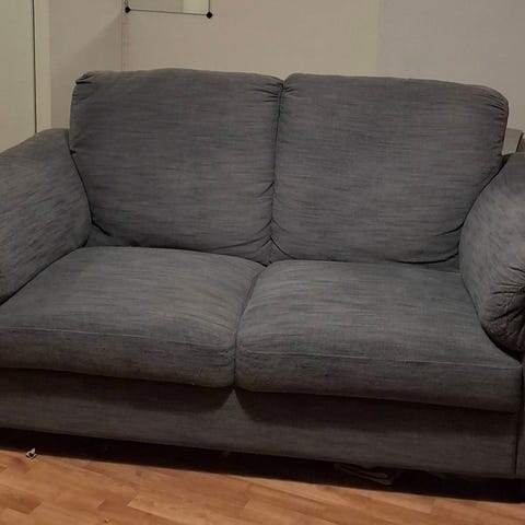 jag säljer nu min bekväma soffgrupp, bestående av en soffa, en fåtölj och en fotpall, eftersom jag ska flytta och har köpt nytt. Soffan och fåtöljen har använts väl men erbjuder fortfarande fantastisk sittkomfort med sina tjocka kuddar och djupa design. Klädseln är avtagbar och tvättmaskinssäker, och om den gråa färgen inte tilltalar dig, finns det olika stilar att köpa på IKEA.