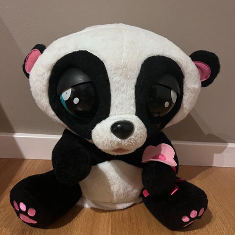 Panda interaktiv barnleksak i svart och vitt. Märke: Club Petz Yoyo Panda. Kan blinka och skratta. CE-märkt