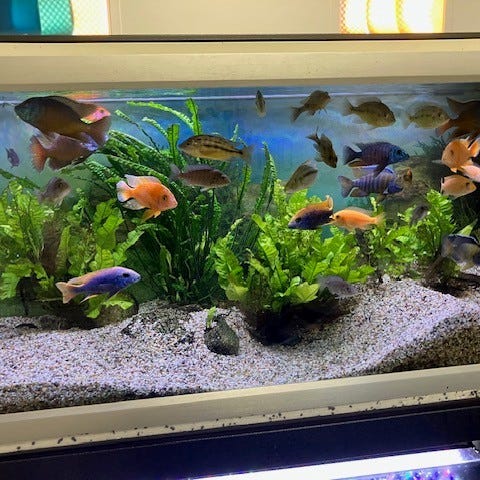 Jag har även en del fiskar kvar (flera Malawi såsom Golden, Orange zebra, orange Aulonocara, några Princessa av Burundi, 1 st Scalare, 1 st Acara, Julidichromis regani, några guppisar).