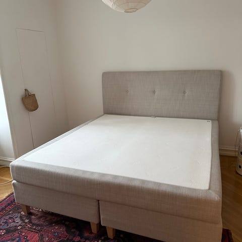 Mycket bra skick. Dubbla madrasser (Jensen AMBASSADØR). Beige. Höjd från golv ca 56 cm.