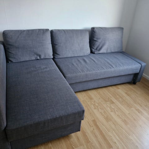 Hej. Har en bäddsoffa vi inte använder längre. Fint och fungerar jättebra. Finns lite målarfärg på en liten del då min dotter glömde av att hon hade färg på handen. Ser bild. Demonterat och redo att hämta. 😊