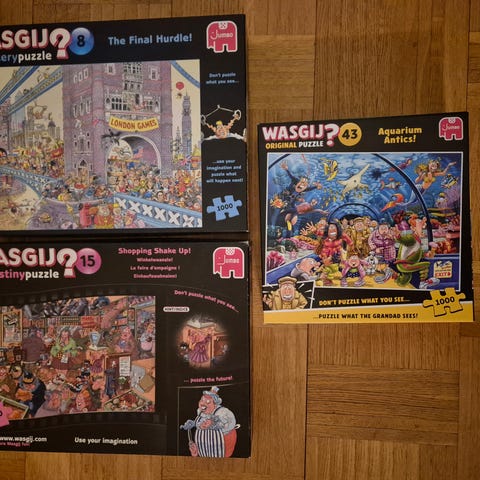 2 st Wasgij Retro Originalpussel med 1000 bitar. Pusslet har motiv från olika scener med många detaljer och figurer, vilket gör det lämpligt för pusselentusiaster som söker en utmaning med retrotema.