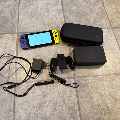 Nintendo Switch konsol inklusive laddare och original fodral. Produkten är avsedd för spel på Nintendo Switch-plattformen.