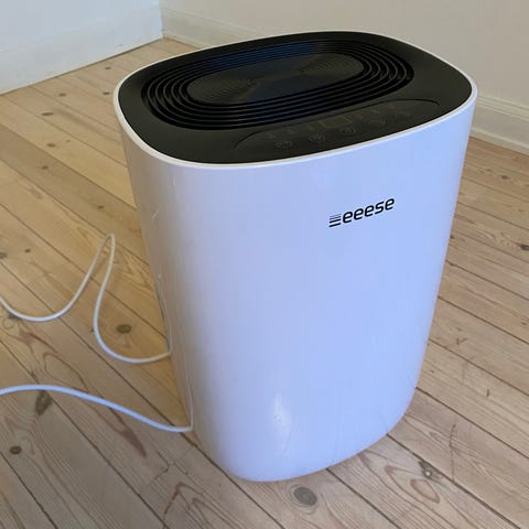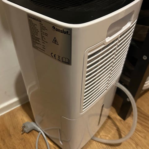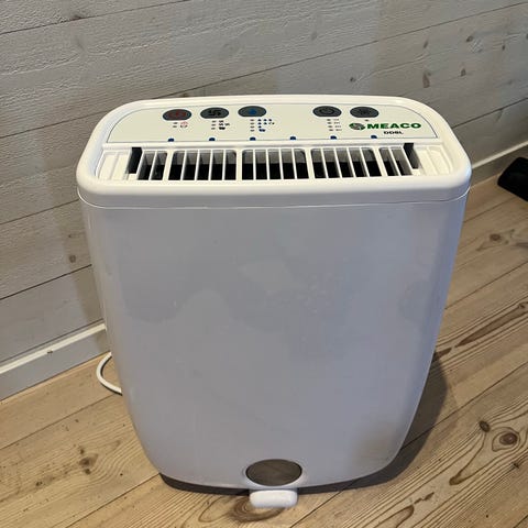 Snygg Wood’s 50 DSC50FM avfuktare med justerbar humidistat och filter. Tillverkad i Sverige. Enhet i metall med reglage för inställning av luftfuktighet och effekt.