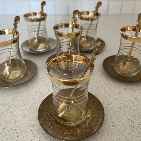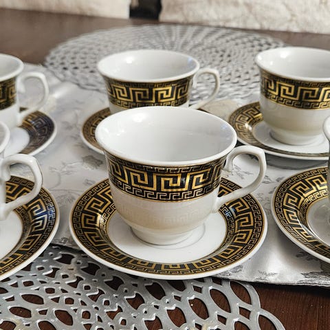 Små kaffekoppar i porslin på tennfat, 12 st