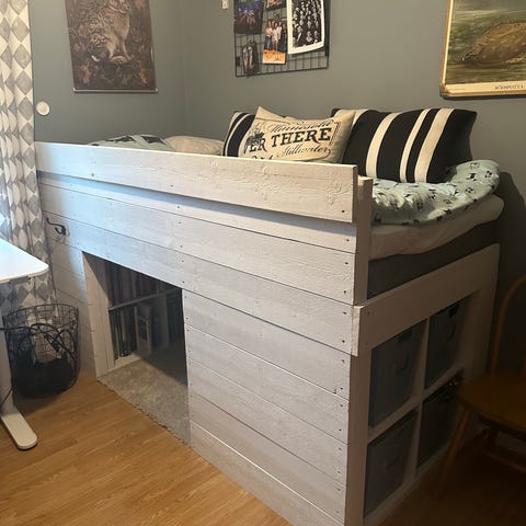 Säng med förvaringslådor. Sängen kan dras ut för 2 sängplatser. Perfekt för barnrummet eller gäststugan.