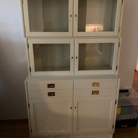 Skåpet är tvådelat och är tungt. Krävs minst två personer att bära ner då det är 3 trappor upp och utan hiss.