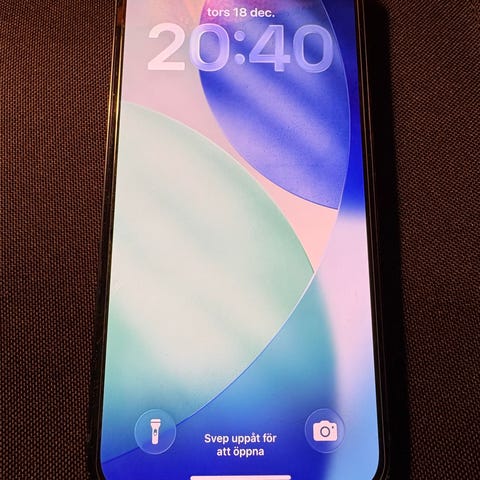 Apple iPhone 13 med 128 GB lagringskapacitet. Mobilen har en blå färg och är utrustad med dubbel bakre kamera. Telefonen levereras med ett svart skyddsfodral. Enheten har en skärm med en notch för frontkamera och sensorer.