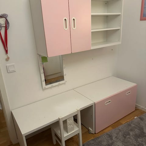 90x52x48 Bänk med leksaksförvaring från serien Småstad från Ikea. Färgen är vit. Handtaget går att byta om man vill.