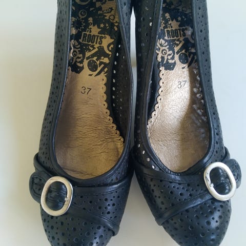 Rieker damskor i storlek 37, tillverkade i svart läder. Skorna har en dekorativ metallring och är designade med en elastisk rem över vristen för bättre passform. Sulan är av gummi för bra grepp.