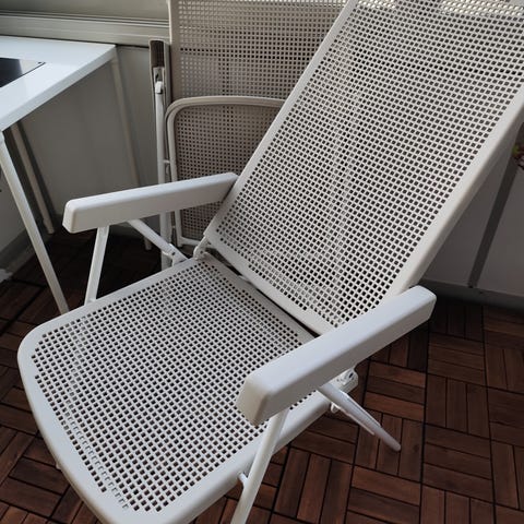 Trädgårdsstol med svart meshmaterial för sits och ryggstöd samt armstöd i trä. Stolens ram är i metall och den är hopfällbar för enkel förvaring och transport. Gedigen konstruktion och samtidigt smidiga att hantera och framför allt jättesköna