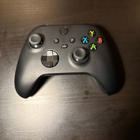 Xbox One trådlös handkontroll i vit färg. Kan även användas till Xbox Series X/S. Båda har något överkänsliga vänster-joysticks (en kort rörelse uppåt/nedåt kan ibland registreras som om joysticken är konstant förd uppåt eller nedåt, vilket är störigt men kan pareras genom att föra joysticken i motsatt riktning). I övrigt fungerar de felfritt. Kudden för vänster joystick på ena handkontrollen är borta.