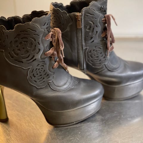 Stilliga, högkvalitativa och mjuka läderskor. Bekväm klack. Har använts 2 gånger. Finns en liten repa på sidan.