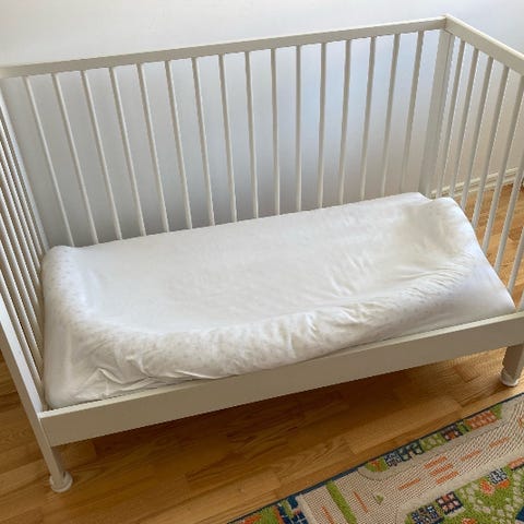 Två stödbrädor från IKEA, Nattapa. Stödbrädan är ett bra skydd under många år eftersom den är lika enkel att fästa på sidan av spjälsängen som på en utdragbar eller vanlig barnsäng. Används som sänggrind för att förhindra att barn ramlar ur sängen. Säljer båda för 200 kr.