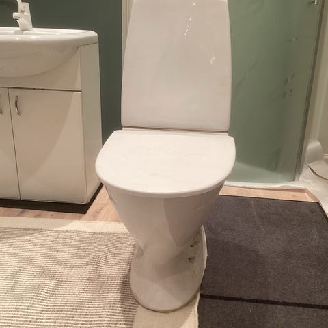 Badrumsmöbelset med handfat och toalett Badrummet byttes ut sommaren 2025