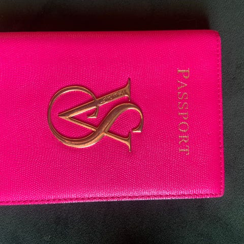 Victoria's Secret passfodral tillverkat i fuskläder. Passfodralet är unisex och har ett inre mönster med leopardtryck. Designat för att skydda och organisera pass vid resor.