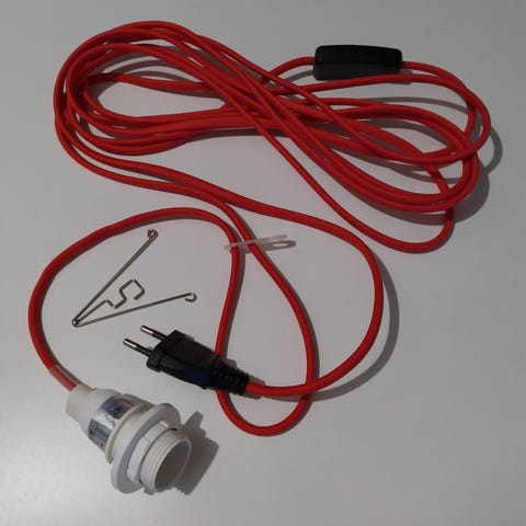 Inklusive plastögla i elkabeln för att hänga upp direkt.