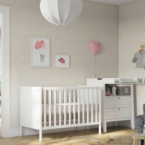 Säljer en baby säng som kan öppnas helt på ena sidan för att ställas direkt intill en vuxensäng som bedside crib. När barnet blir större kan sidan enkelt stängas igen och sängen används som vanlig spjälsäng.