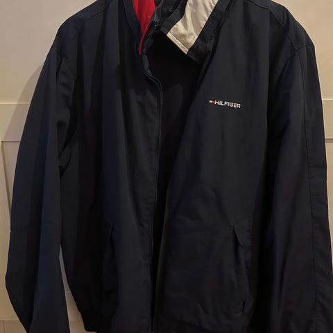 Äkta Tommy Hilfiger vinterjacka, mörkblå. Varm och kraftig modell.