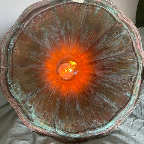 Urnan har en invändig lampa och ett rött transparent plastfat överst. Det röda plastfatet har någon form av fontänmotor inbyggd i sig. Jag har inte testat den med vatten. Men antingen rör det sig om en mindre vattenstråle eller annars, kanske mer troligt, om en dimfontän. Där vattenytan täcks av ett lager vattendimma.
