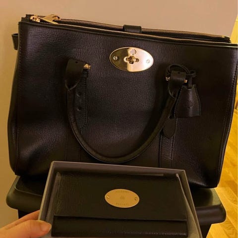 Mulberry handväska i rött läder för kvinna. Handväskan har dubbla handtag och en rektangulär form med en framplatta i metall. Insidan är ren och rymlig. Den kommer med dustbag och kvitto. Kommer från rök och djurfri hem.
