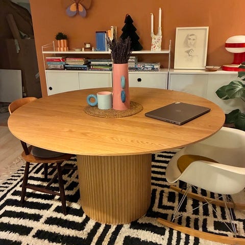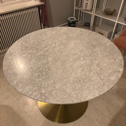 Bordet är ca 1,5 år gammalt och har egentligen bara stått som prydnad men alltid haft duk på. Enstaka tillfällen utan duk men inga tecken på användning