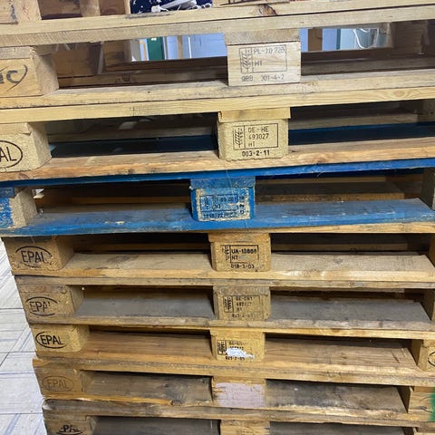 Har ett antal lastpallar -bortskänkes till den som hämtar alla på en gång.