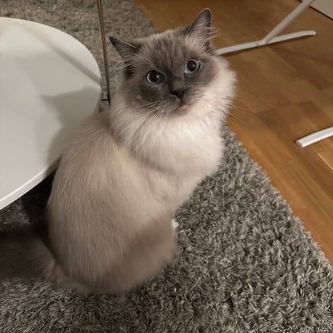 Mio är en underbar erfaren Ragdoll hane som finns tillgänglig för alla kloklippta kattflickor. Han är social, lugn och väldigt snäll. Mio är 2,5 år.