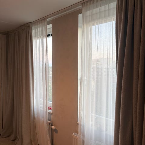 Gotain gardiner - 6 singellängder 140x344. Färgen är benvit och de är vävda i linne.