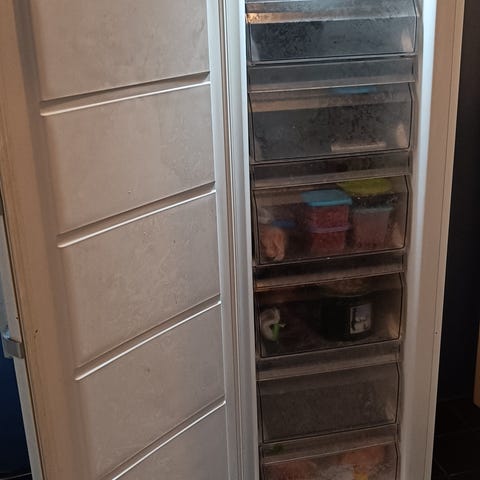 Säljer ett fristående frysskåp av märket Matsui, modell MUF48W19E, köpt på Elgiganten. Frysen är ett par år gammal och har använts normalt. Den fungerar som den ska och håller kylan bra. Skåpet har tre genomskinliga fryslådor och en justerbar termostat. Skicket är begagnat med synliga repor, märken och visst slitage på utsidan, vilket inte påverkar funktionen. Invändigt är den i okej skick. Passar bra som extra frys i garage, förråd eller sommarstuga. Säljes på grund av platsbrist och hämtas av köpare.